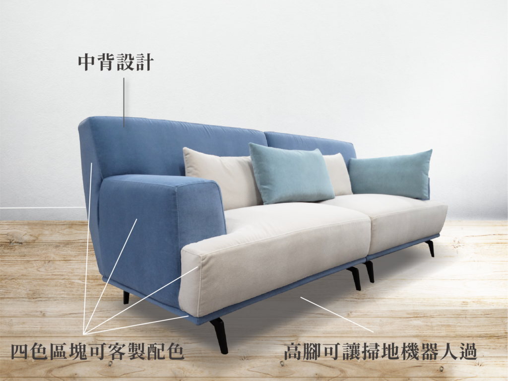 沙發的底框、扶手、坐墊等部位皆可隨心組合喜愛的顏色,打造您專屬的個人風格